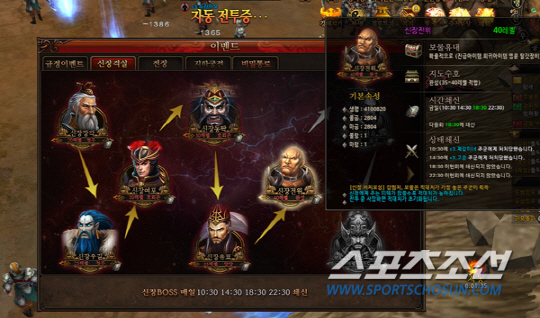 게임을 플레이하다보면 삼국지에 등장하는 다양한 장수들이 이벤트나 맵에 조우하게 된다. 유비, 관우, 장비 등도 자신의 캐릭터를 도와줄 수 있는 장수로 등장하며 황충, 조조, 주유, 여포와 같은 장수들도 등장하니 삼국지 마니아들이 이곳저곳을 돌아다니는 재미를 살렸다. 특히 협객행 시스템은 맵의 곳곳에 등장하는 다양한 레어 몬스터들을 쓰러뜨리고 보다 좋은 보상을 얻을 수 있는 것으로 유저들이 맵 전체를 다니며 삼국지의 인물이나 등장 캐릭터를 생각할 수 있는 시스템이라 볼 수 있다.