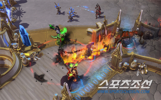 한편 블리자드는 신규 영웅 '도살자'와 함께 디아블로 콘셉트의 신규 전장 '영원한 분쟁'을 선보였다. 이 맵은 지옥으로 변한 천상을 이미지화 했으며 좌측은 천상, 우측은 지옥으로 만들어진 것이 핵심이다.