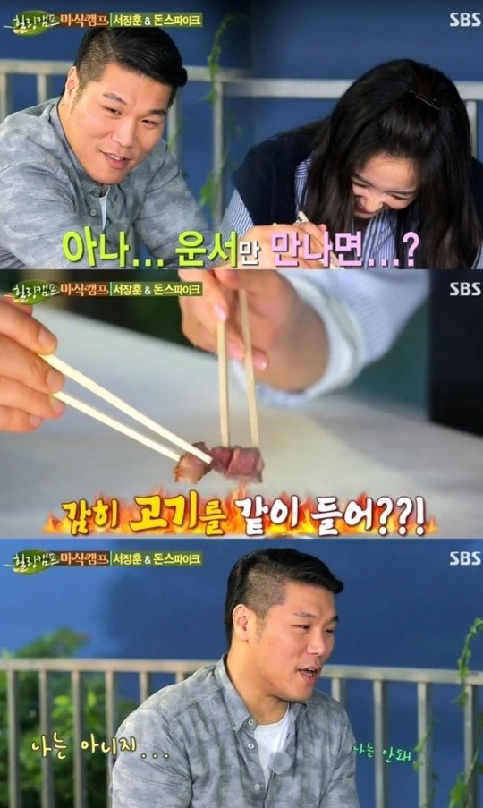 특히 김제동은 서장훈과 장예원이 우연히 같은 스테이크를 집자, 어이없어 하며 "수상하다 했어"라며 불만 섞인 장난을 쳤다.