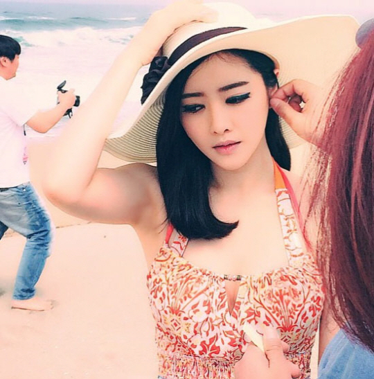 홍수아의 모습이 담겨있다. 촬영을 준비중인 그는 진지한 표정을 보이고 있다.