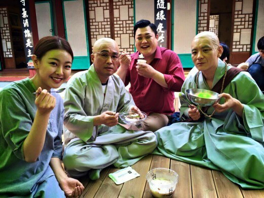 공개된 사진에서는 스님으로 변장한 김건모가 출연진들과 함께 팥빙수를 먹고 있는 모습이다.