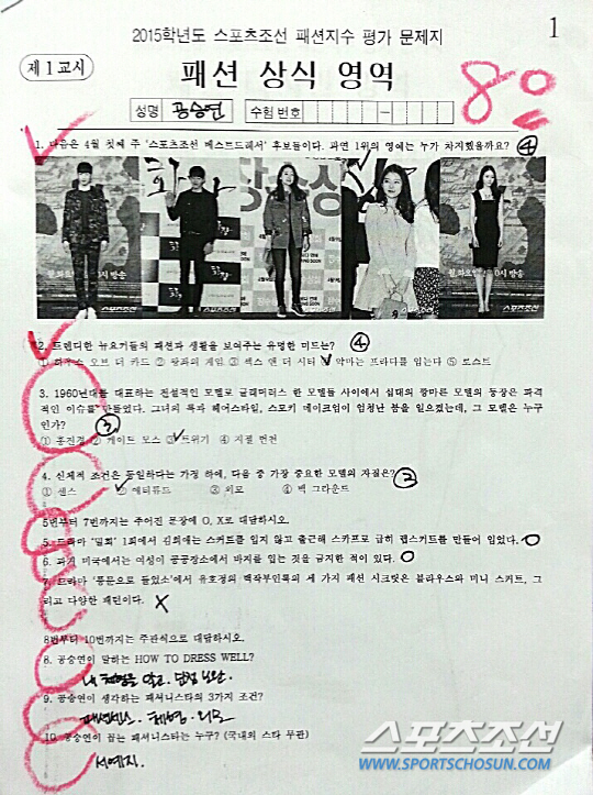 다음은 '풍문' 속 당찬 아나운서 서누리, 공승연의 패션고사! 그녀의 점수는 김권보다 1문제를 더 틀려 80점을 받았습니다. 그녀 역시 점수에 연연해하지 않고 시원시원! 자신만만! 하게 문제를 풀어나갔습니다.