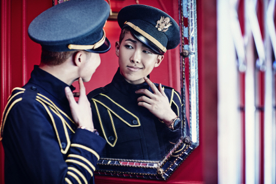 15일 방탄소년단의 공식 SNS를 통해 랩몬스터의 사진 다섯 장이 공개됐다. 사진 속 랩몬스터는 복고풍 엘리베이터 안에서 밀리터리 코스튬을 입은 채 강렬하고 스타일리쉬한 자태를 뽐내거 있다.