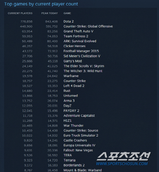 두 게임은 각각 80만, 50만에 가까운 동시 접속자 수를 기록했다. 그 뒤로 최근 발매된 락스타게임즈의 'GTA5'와 밸브의 또 다른 FPS '팀포트리스2' 등이 8만여 명의 동시접속자 수를 유지하면서 스팀의 상승세를 도왔다.