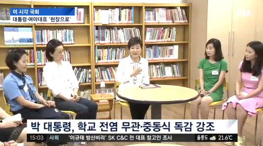박 대통령의 학교 방문은 학교 수업 재개와 메르스 확산 방지를 위해 노력해준 교직원과 보건소 직원 등을 격려하고, 막연한 불안감에 위축되지 말고 정상적인 수업과 교육 활동에 임해달라고 당부하기 위해 마련됐다. <스포츠조선닷컴>