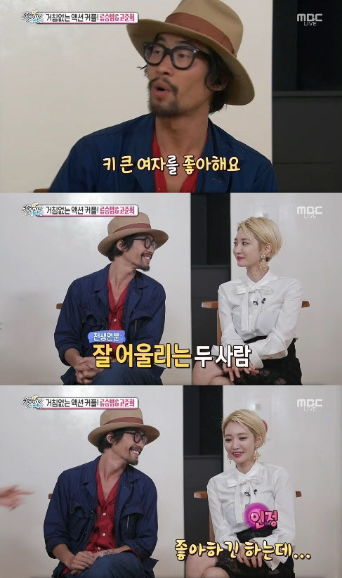 이날 류승범은 고준희의 큰 키에 대한 질문에 "나는 키 큰 여자를 좋아한다. 나와도 잘 어울리는 것 같다"며 미소를 지었다.