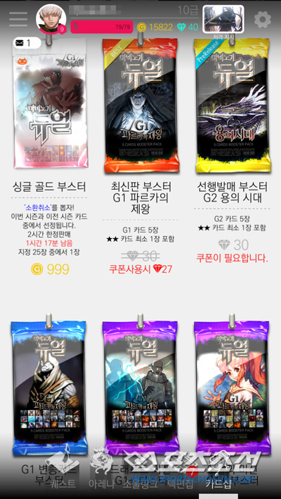 또한 게임머니로 카드를 구매할 수 있어 카드 확보는 큰 문제가 없다. 물론 게임 머니로 구매하는 카드에서는 좋은 카드들이 등장하기 쉽지 않지만 밸런스에 필요한 카드를 다양하게 채울 수 있다. 12장의 카드 중 4~5장은 이러한 카드로 채워야 하기 때문에 다양한 카드 확보도 중요하다.