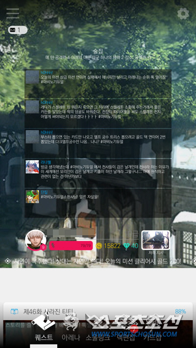 마비노기 세계관의 캐릭터들이 등장해 마비노기 팬들이라면 흥미롭게 내용을 볼 수 있고, 마비노기 팬이 아니더라도 짧은 스토리텔링으로 다양한 컨셉의 상대와 대결을 펼칠 수 있는 모드다. 초반에는 활용할 수 있는 에너지가 적기 때문에 필수적으로 진행해야 하는 부분이고, 3장이 넘어가면 아레나 혹은 오늘의 미션을 진행하기에 충분한 스테미너가 되기 때문에 플레이에 다소 제한은 사라진다.