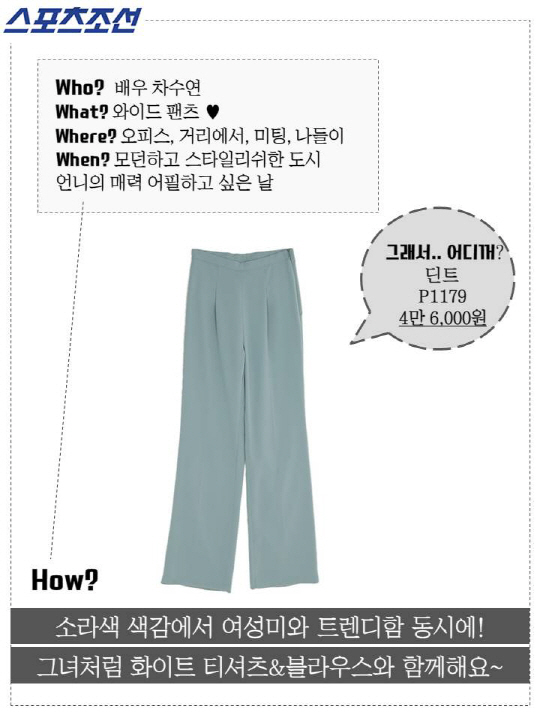 #어디꺼 #스포츠조선 #차수연 #와이드팬츠 #바람만_불면_영화_속_여주인공 #대세팬츠 #배나오면_낭패일까#딘츠