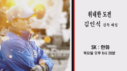 18일 오후 6시 20분 MBC스포츠플러스가 생중계하는 KBO리그 SK 대 한화의 경기에 김인식 전 감독이 특별 해설자로 나선다.
