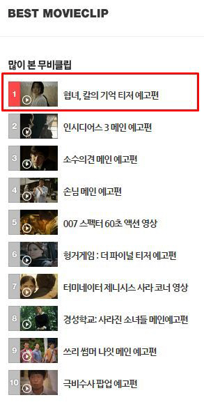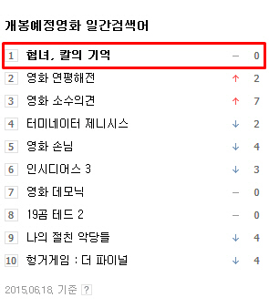뿐만 아니라 개봉예정영화 일간 검색어 순위까지 점령한 '협녀, 칼의 기억'은 온라인에 뜨거운 반향을 일으키며 2015년 최고의 기대작다운 행보를 보이고 있다. 또한 올 여름 시장 BIG3로 꼽을 수 있는 기대작 '암살'과 '베테랑'의 티저 예고편이 공개가 된지 1주 이상이 지났지만 각각 82만, 74만의 조회수를 기록하고 있는 것에 비해 '협녀'은 당일 조회수가 62만에 육박하는 진기록을 달성해 눈에 띈다.