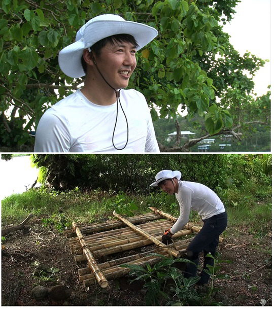 이후 생존터에 도착한 윤상현은 다짜고짜 뗏목부터 만들기 시작했다. "'톰 소여의 모험'처럼 뗏목을 타고 바다를 나가는 것이 내 꿈이다"고 밝히며, 섬 주변에서 구해온 대나무에 직접 벗긴 나무껍질을 끈 삼아 칭칭 동여매 그럴듯한 뗏목을 만들기 시작한 것.