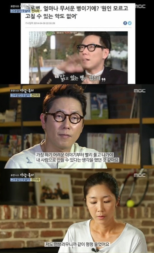 이어 전미라는 '내가 괜찮다고 씩씩하게 얘기해주고 죽을 병도 아닌데 어떠냐고, 걱정하지 말라고 했다. 내가 좋은 기운을 많이 가진 사람이니까 그런 말을 해주면서 앞으로 같이 가보자고 했다"고 말하며 눈물을 흘렸다.