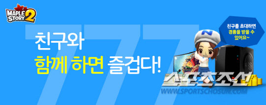 우선 7월 6일 자정까지 공식 홈페이지에서 사전 캐릭터를 생성한 후 초대 URL을 개인 SNS에 게시하고, 이를 통해 친구도 사전 캐릭터 생성을 완료하면 초대 인원에 따라 추첨을 통해 '나만의 메이플스토리2 PC(7명)', '삼성 커브드 모니터(70명)', '문화상품권(700명)'을 선물하며, 이벤트 참여자 전원을 대상으로 매일 추첨을 통해 넥슨캐시도 지급한다.