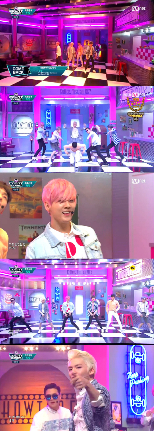 틴탑은 25일 오후 방송된 Mnet '엠카운트다운'에 출연해 새 앨범 'NATURAL BORN TEEN TOP'의 타이틀곡인 '아침부터 아침까지'와 창조의 자작곡인 '5계절' 무대를 선보였다.