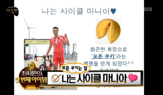 하지만 자전거 초보자에게 몸의 라인을 그대로 드러내는 핏의 자전거 의류, 저지나 패드 바지, 빕숍은 쉽사리 도전할 수 있는 상대가 아니다. 슈퍼주니어 최시원이 MBC '무한도전' 식스맨이 되기 위해 작정하고 꺼내든 사진, '포춘쿠키'는 이미 인터넷 상에서는 유명한 유머소재다. 그럼에도 불구하고 당시 방송에서도 알 수 있듯, 최시원의 자전거 열정은 식지 않았다. 그는 뚜르 드 서울(Tour de Seoul)을 기획해 매끈한 자전거 의류를 입고 서울 곳곳을 활보하기까지 했다. '우리동네 예체능'에서도 출연자들이 자전거 의상에 민망해하는 일 따위는 벌어지지 않았다고 한다.