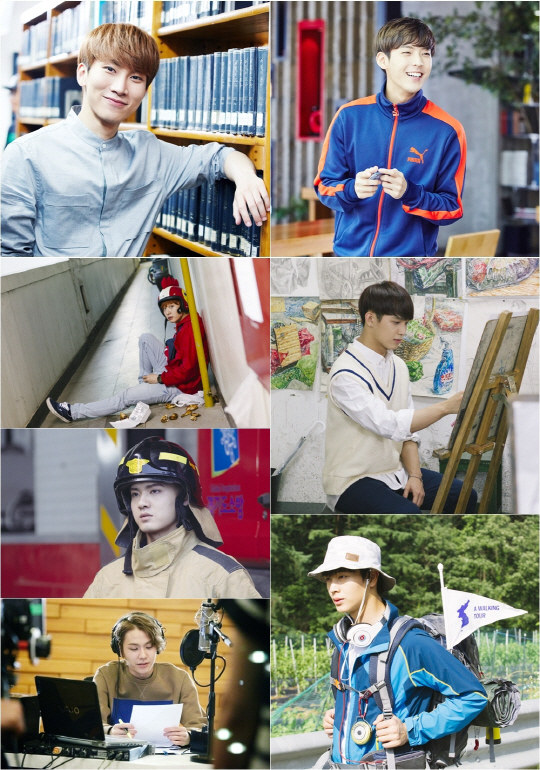 도서관을 배경으로 환하게 웃음짓는 서은광과 편안한 트레이닝 복 차림에도 빛을 발하는 이민혁, 이젤 앞에 앉아 그림을 그리고 있는 임현식은 우리 주변에 있을 법한 친근한 이미지와 훈훈한 비주얼로 시선을 사로잡는다. 또한 헬멧을 쓴 채 바닥에 주저 앉은 이창섭, 진지한 눈빛의 소방관 프니엘, 스튜디오에 앉아 대본을 읽는 정일훈과 국토대장정에 나선 막내 육성재까지 멤버 각자의 개성을 담은 캐릭터 스포로 신곡에 대한 팬들의 궁금증을 더욱 상승시키고 있는 중이다.