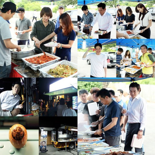 한편, 이날 저녁에는 주상욱의 팬들이 마련한 야식 포차와 커피차. 떡볶이, 어묵, 튀김, 순대 등이 담긴 다양한 분식 메뉴가 차려졌다.