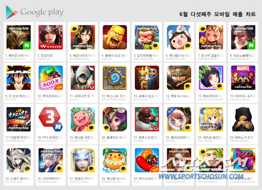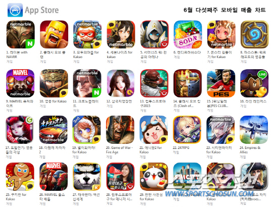 '몬스터 길들이기'는 그동안의 앱스토어 부진을 만회하고 7위로 8계단 상승했다. 킹의 '캔디크러쉬소다' 역시 최근 강화된 마케팅과 무한도전 광고 효과를 톡톡히 보면서 6위로 상승해 다른 인기 게임들을 턱밑까지 추격했다.