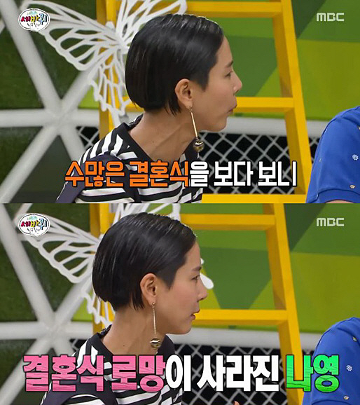 이날 MC 신동엽은 김나영에게 "제주도에서 작은 결혼식을 올렸다. 이나영 이효리와 어깨를 나란히 하는건가"라고 물었고, 김나영은 "그정도는 아니고, 예전에 결혼식장에서 아르바이트를 했었는데 똑같은 결혼식을 너무 많이봐서 색다르게 하고 싶었다"고 고백했다.