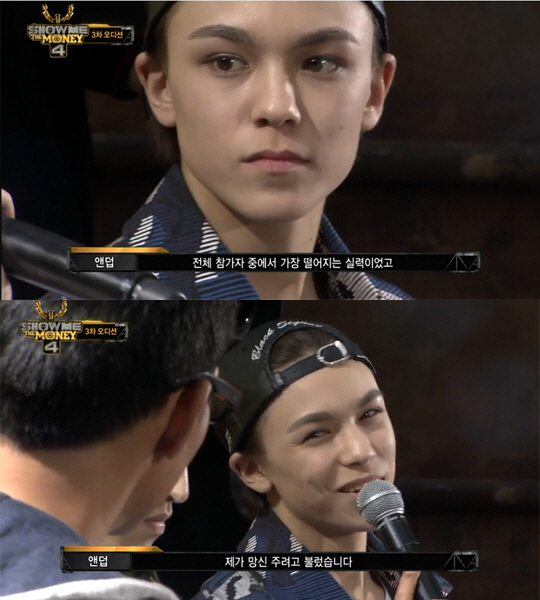 앤덥은 4일 쇼미더머니4 2화 방송에서 "소속사에서 밑질 것 없으니 나가보라고 한 것 같다"라며 "수준 안되는 사람이 어떻게 붙었는지 이해가 안된다. 빨리 떨어뜨리고 싶다"라고 혹평했다.