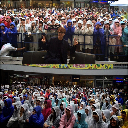 일본에서 솔로 데뷔 음반 활동을 펼치고 있는 비스트의 손동운이 빗 속에서 열정적인 라이브 무대를 선보였다.