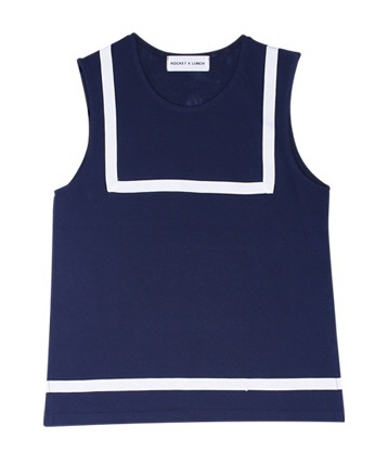 마린룩을 연상케하는 화이트 라인이 포인트인 민소매 티셔츠를 입고 등장한 강소라. 청량한 네이비 색감과 깔끔한 실루엣, 그리고 그녀의 건강한 피부톤까지 어우려서 시원한 여름 캐주얼 룩을 완성했습니다. 스커트와 함께하면 더욱 발랄하고 청순한 느낌을, 데님 진과 함께하면 은근한 섹시미를 어필할 수 있는 여름 최고의 아이템이에요. 로켓런치 제품. 3만 9,000원.