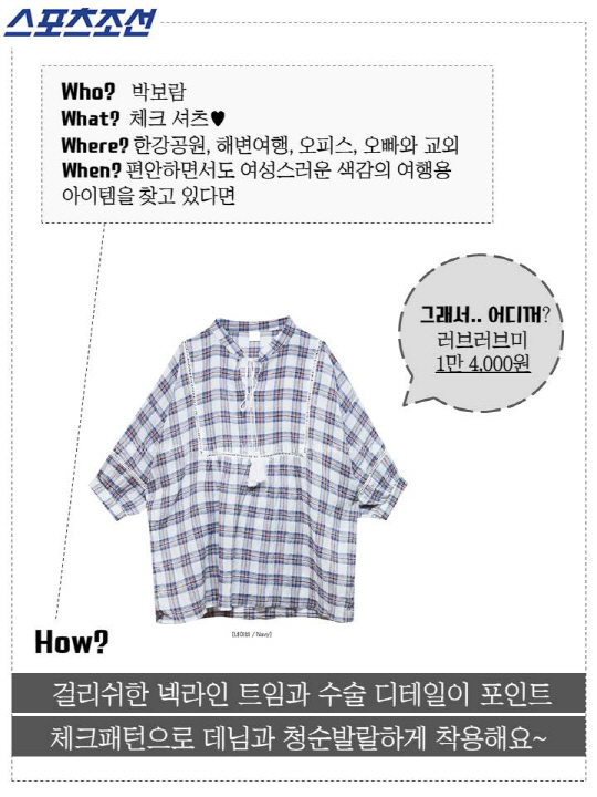 #어디꺼 #스포츠조선 #박보람 #체크셔츠 #박보람인스타그램 #예뻐진_그녀의_더_예쁜_저렴이셔츠 #수술장식 #러브러브미