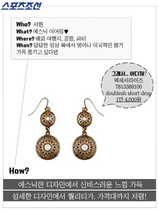 [어디꺼] 소녀시대 서현, 저렴에도 충분히 예쁜 에스닉 이어링?