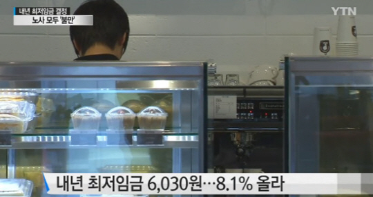 내년도 최저임금 시급이 올해보다 450원(8.1%) 오른 6천30원으로 결정됐다.