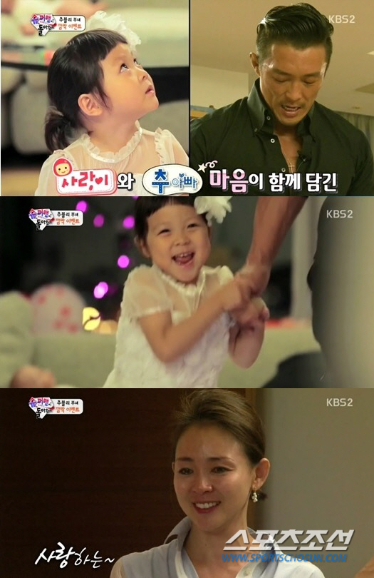 '강한 남자'의 표본 추성훈은 '슈퍼맨이 돌아왔다'를 통해서 딸 앞에서는 한없이 너그러운 '딸 바보'의 모습을 보였다. 하지만 대조적으로 아내 야노 시호에게는 무뚝뚝한 남편이었다. 애교가 많은 야노 시호가 '사랑한다 말해달라' '안아 달라'고 적극적으로 사랑을 표현해도 추성훈은 언제나 무뚝뚝한 표정과 말투로 대답을 회피했다.