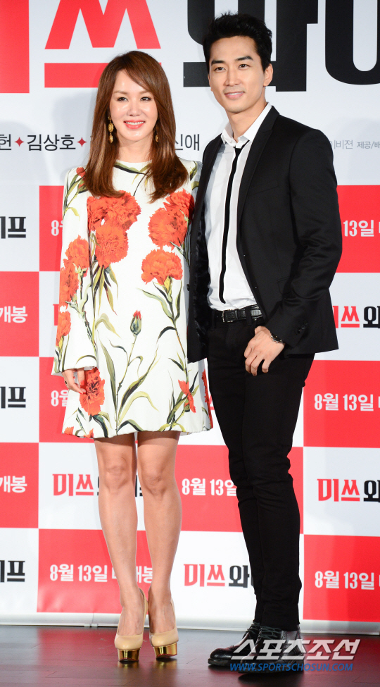 엄정화 송승헌 영화 '미쓰와이프' 제작보고회가 13일 오전 서울 동대문 메가박스에서 열렸다. 배우 엄정화와 송승헌이 함께 포즈를 취하고 있다. 정재근 기자 cjg@sportschosun.com/2015.07.13/ |