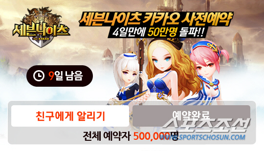 넷마블게임즈(이하 넷마블, 대표 권영식)는 모바일 액션 RPG '세븐나이츠(개발사 넷마블넥서스)'에서 초대형 프로모션 사전예약 시작 4일 만에 50만 명을 돌파했다고 13일 밝혔다.