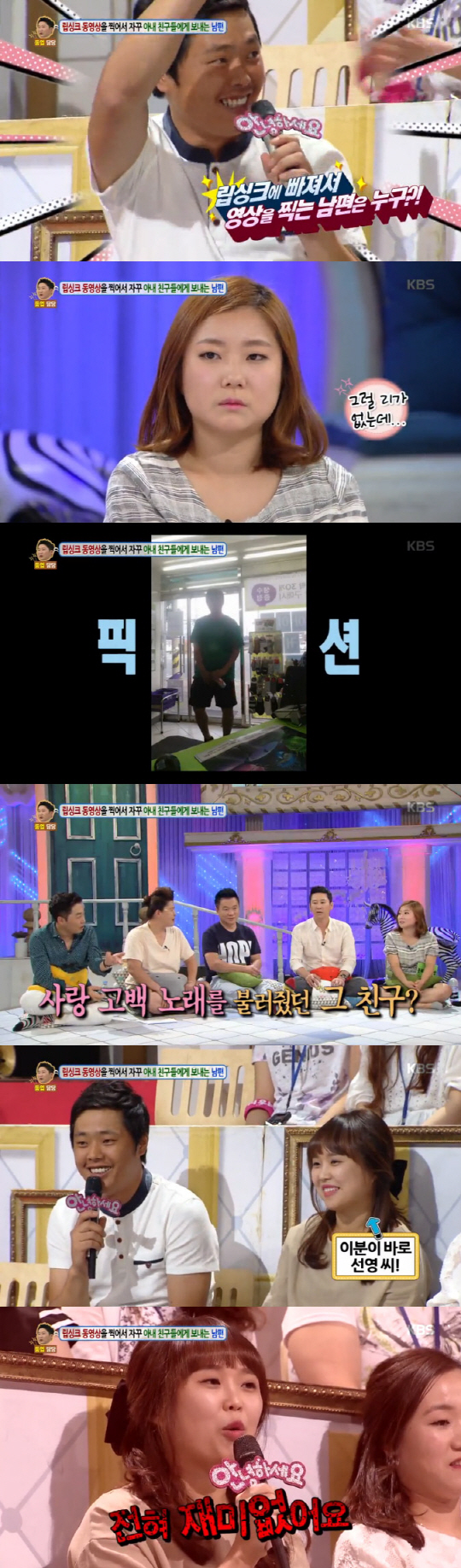 이어 남편은 MC 정찬우의 "영상을 아내 친구에게 보내냐"는 물음에 "아내에겐 감정이 살아나질 않는다. 평소 '잘한다' 소리를 해줘야 하는데 호응이 없다. 그래서 반응이 좋은 아내의 친구에게 보낸다"고 답해 스튜디오를 발칵 뒤집어 놨다.