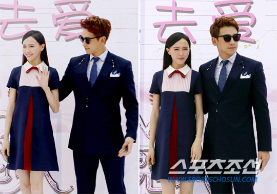 이날 비는 네이비 컬러의 정장에 선글라스를 착용한 채 훈훈한 비주얼을 뽐냈다. 또 여주인공 탕옌은 긴 생머리에 단아한 원피스 차림으로 청순미를 한껏 발산했다.