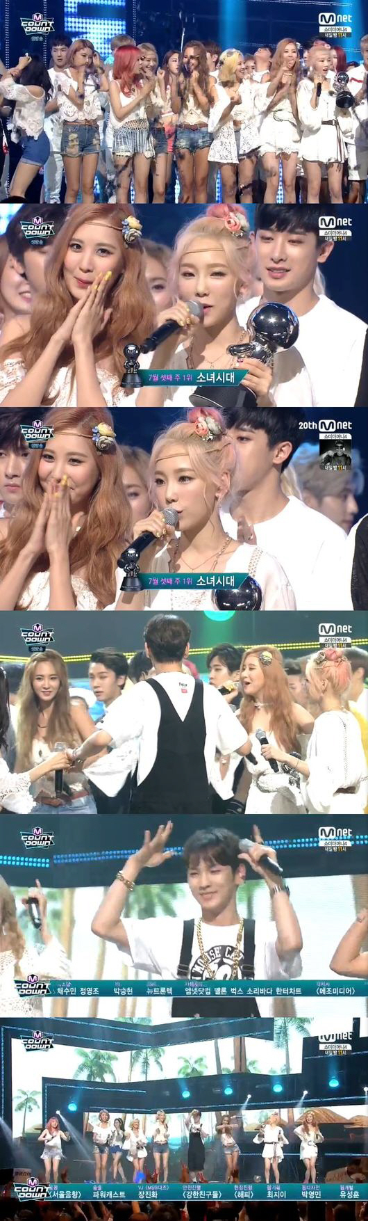 소녀시대는 16일 오후 방송된 엠넷 '엠카운트다운'에서 신곡 '파티'(PARTY)로 1위를 차지했다.