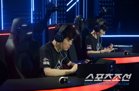 '베인글로리 월드 인비테이셔널'에 참가한 선수들이 태블릿PC를 활용해 '베인글로리' 경기를 진행하고 있다.