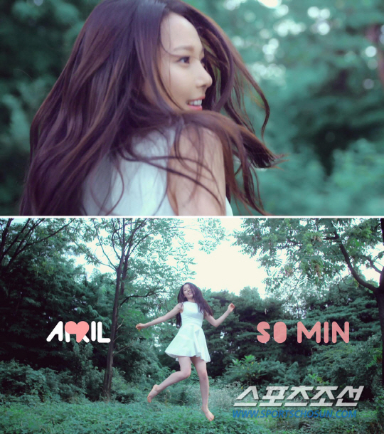 공개된 약 30초 가량의 영상 속 '소민'은 청량한 숲을 배경으로 깔끔한 흰색 원피를 입은 채 청순하면서 몽환적인 분위기를 자아내 눈길을 끌었다. 특히, 생머리와 하얀 피부, 깔끔한 비주얼로 무장한 에이프릴 '소민'은 특유의 사랑스러운 매력을 발산하며 보는 이를 유혹했다.