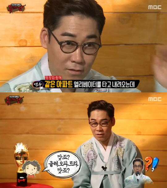 김연우는 "아파트 주민 한 부부와 같은 엘리베이터를 타고 내려왔는데, 갑자기 내리면서 '맞죠? 클레오파트라 맞죠?'라며 질문하시더라"면서 "당황하면서 '아니다'고 답한 기억이 난다"고 말해 웃음을 자아냈다.