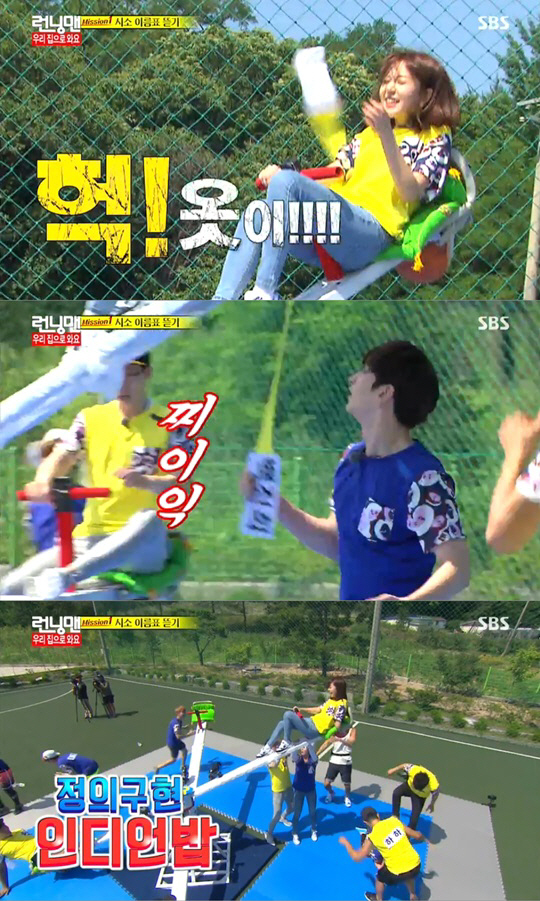 '런닝맨'에 출연한 2PM 찬성이 게임 도중 백진희의 옷을 찢는 대형 사고(?)를 쳤다.