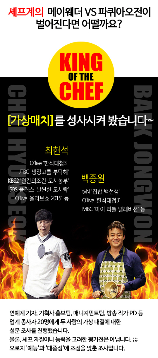 [스포츠조선 백지은 기자] 셰프판 메이웨더 VS 파퀴아오 전이 벌어진다면 어떨까.