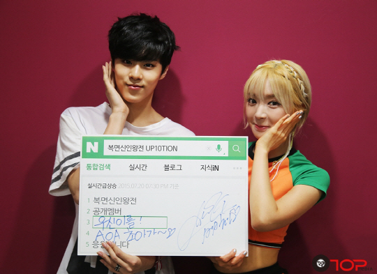 10인조 신인 보이그룹 업텐션(UP10TION)의 멤버 우신이 AOA 초아의 응원을 받았다.