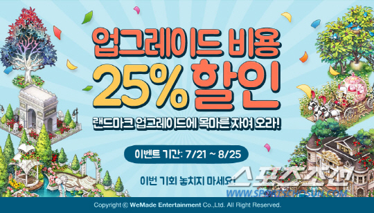 이외에도 8월 4일까지 미 접속 기간에 따라 프리미엄 생산시설, 골드, 하트 등을 받을 수 있는 휴면 복귀 이벤트와 8월 25일까지는 랜드마크 업그레이드 비용 25% 할인 이벤트, 특정 퀘스트 이벤트를 마련했다.