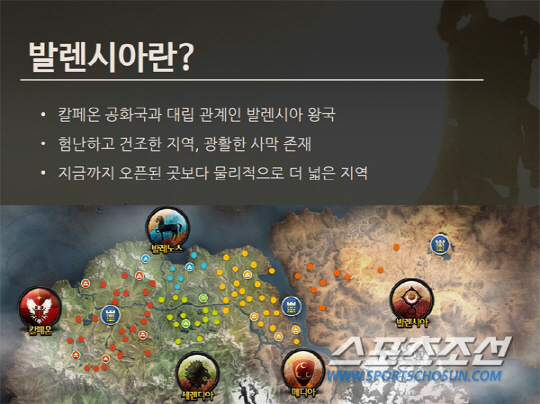 김재희 기획자는 "발렌시아는 상위 모험가를 위한 지형으로 공개된다"며 "기존 지역이 라이트한 구조였다면 이곳에서는 전혀 다른 생소함을 느낄 수 있을 것이다. 모험심을 자극하는 환경과 특수한 아이템 및 탈 것으로만 이동 가능한 사막구조는 유저들을 가로막겠지만 공략 후 주어지는 보상은 클 것이다"고 말했다.
