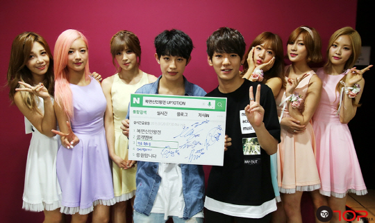 10인조 신인 보이그룹 업텐션(UP10TION) 의 멤버 환희와 리더 진후가 에이핑크의 응원을 받았다.