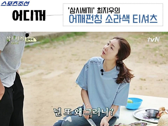#어디꺼 #스포츠조선 #삼시세끼 #최지우 #티셔츠 #정선에서도_빛나는_그녀의_청순미모 #나였으면 #비이커