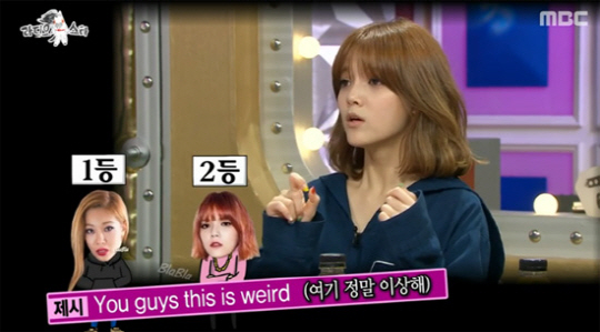 이날 지민은 '언프리티 랩스타'를 통해 불거진 제시와의 불화설에 대해 "래퍼 15인이 와서 평가를 하는 미션이었다. 제시의 팀이 1등을 하고 우리 팀이 2등을 했는데 (제시가) 그걸 인정 안 한 거다"고 말했다.