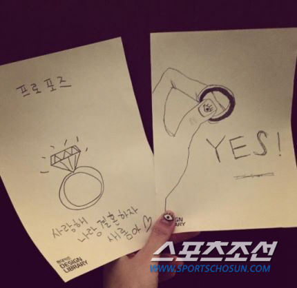 김새롬은 24일 자신으니 인스타그램에 '나 지금 한국이 아니야. 고맙고 미안해들'이라는 글과 함께 사진 한장을 올렸다. 사진에는 이찬오 셰프가 김새론에게 프로포즈했을 때 사용했을 것으로 보이는 그림이 담겨있다. 종이에는 다이아몬그 그림이 그려져 있고 '프로포즈, 사랑해 나랑 결혼하자 새롬아'라는 글귀가 적혀있다. 옆에 있는 종이에는 반지를 들고 있는 손 그림과 'YES'라는 글귀가 눈길을 끈다.