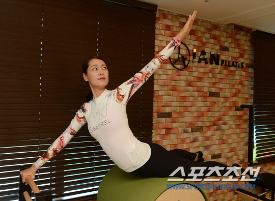 이안 필라테스 허미란 강사가 래쉬가드를 입고 필라테스 동작을 선보이고 있다. 허상욱 기자 wook@sportschosun.com/2015.07.08/ |