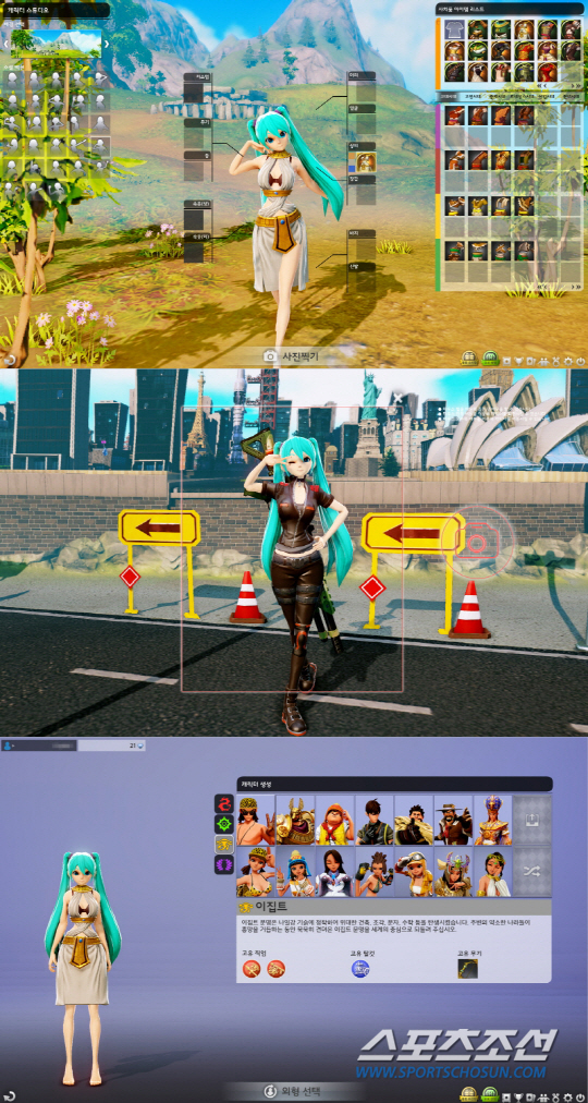 이번 파이널 테스트에서 주목할 부분은 바로 '캐릭터 스튜디오'의 추가다. 자신이 만든 캐릭터에 '문명 온라인'에 구현되어 있는 다양한 의상과 포즈를 씌우며 캐릭터 프로필 사진(?)을 찍을 수 있다. 마치 심 모 시리즈가 연상되는 훌륭한 디테일이 인상적이었다. 특히 이 '프로필 사진'은 단순한 그림파일이 아니라, 백업해 두었다가 캐릭터 커스터마이징 과정에서 불러와 사용할 수 있는 역할까지 겸하고 있다.